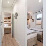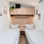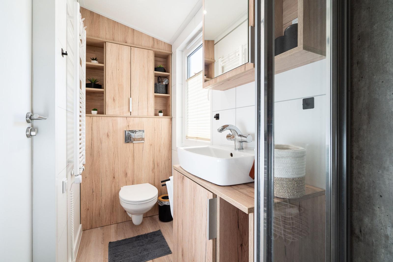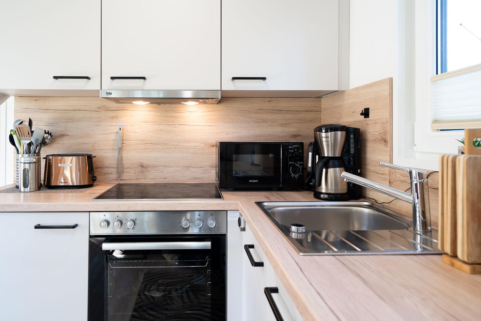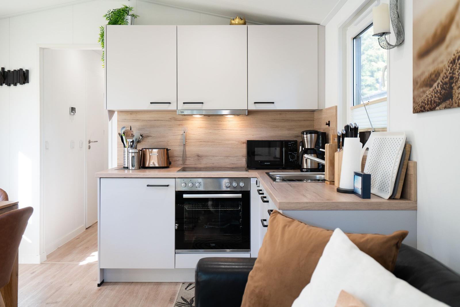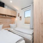 Das freistehende Ferienhaus „Casa del Relax“ in Haffkrug bietet auf rund 44 m² Platz für bis zu vier Personen. Der helle Wohnbereich umfasst ein komfortables Sofa, einen Essplatz und eine offene Küche, die komplett ausgestattet ist mit Kühlschrank, Herd, Mikrowelle, Kaffeemaschine, Toaster und Wasserkocher. Im Hauptschlafzimmer befinden sich ein Doppelbett (ca. 160 x 200 cm) und ein Kleiderschrank, während das zweite Schlafzimmer zwei Einzelbetten (je 75 x 200 cm) bietet. Beide Schlafräume sind mit Thermogardinen ausgestattet. Das moderne Tageslichtbad verfügt über eine Dusche, ein Waschbecken und ein WC. Zu den Annehmlichkeiten zählen kostenloses WLAN, SAT-TV und ein PKW-Stellplatz. Gemeinschaftlich nutzbare Einrichtungen wie eine Waschmaschine, ein Trockner und eine Sauna stehen im Ferienhauspark gegen Gebühr zur Verfügung. Hunde sind in diesem Haus nicht gestattet.