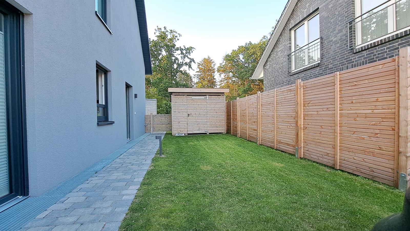 Die Küstenwaldbude Lee erstreckt sich in Pelzerhaken, nur 400 m vom Strand entfernt, und bietet einen großen, komplett umzäunten Garten, der ideal für Urlauber mit Hund ist. In ruhiger Lage einer Sackgasse, umgeben von Natur und einem angrenzenden Wald, stehen zwei Terrassen zur Auswahl, sodass jederzeit ein passender Platz zum Entspannen gefunden werden kann. Auf der hinteren Terrasse befindet sich ein Saunahaus, das zur alleinigen Nutzung bereitsteht – perfekt für ungestörte Momente der Erholung. Für Reisende mit Fahrzeugen stehen zwei Stellplätze zur Verfügung, ergänzt durch einen abschließbaren Geräteschuppen für Fahrräder und weiteres Equipment. Eine Waschmaschine mit Trocknerfunktion ist im gemeinschaftlichen Raum erreichbar, der über die hintere Terrasse zugänglich ist. Die Ausstattung ist ideal für Familien, ergänzt durch Spielsachen und einen Hochstuhl für die Kleinsten.