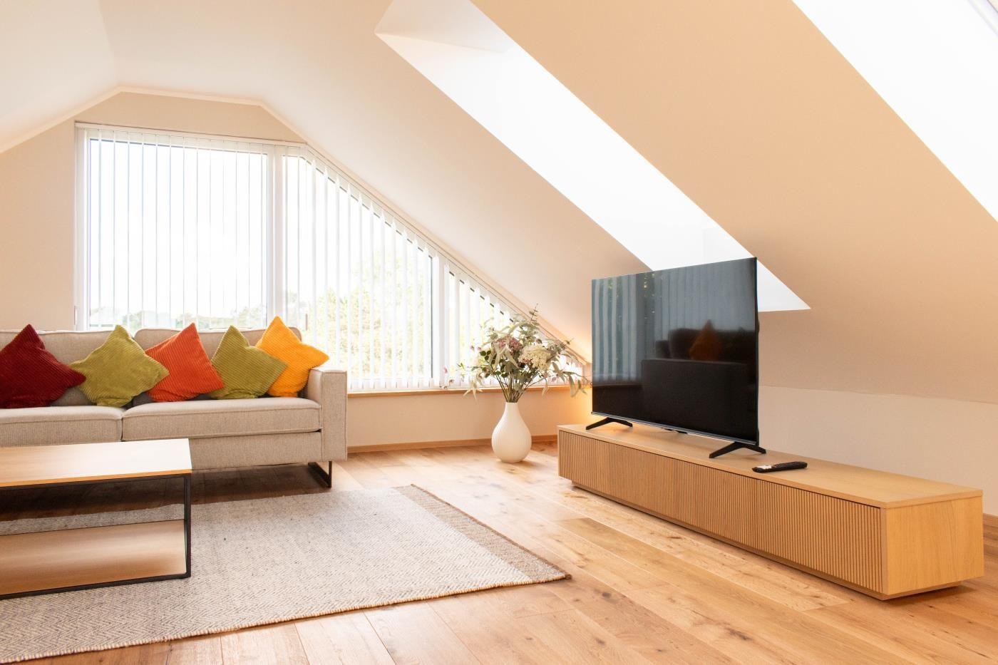 Natürlich ist die Ferienwohnung mit einem WLAN-Zugang sowie mit Smart-TVs im Wohnraum und in den Schlafzimmern ausgestattet.