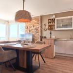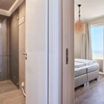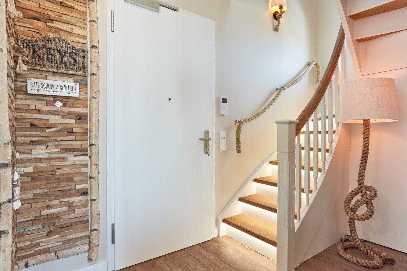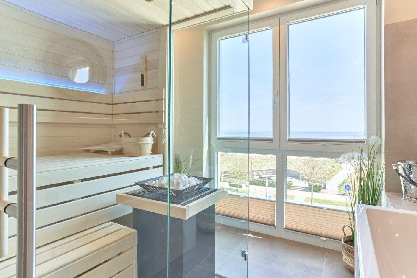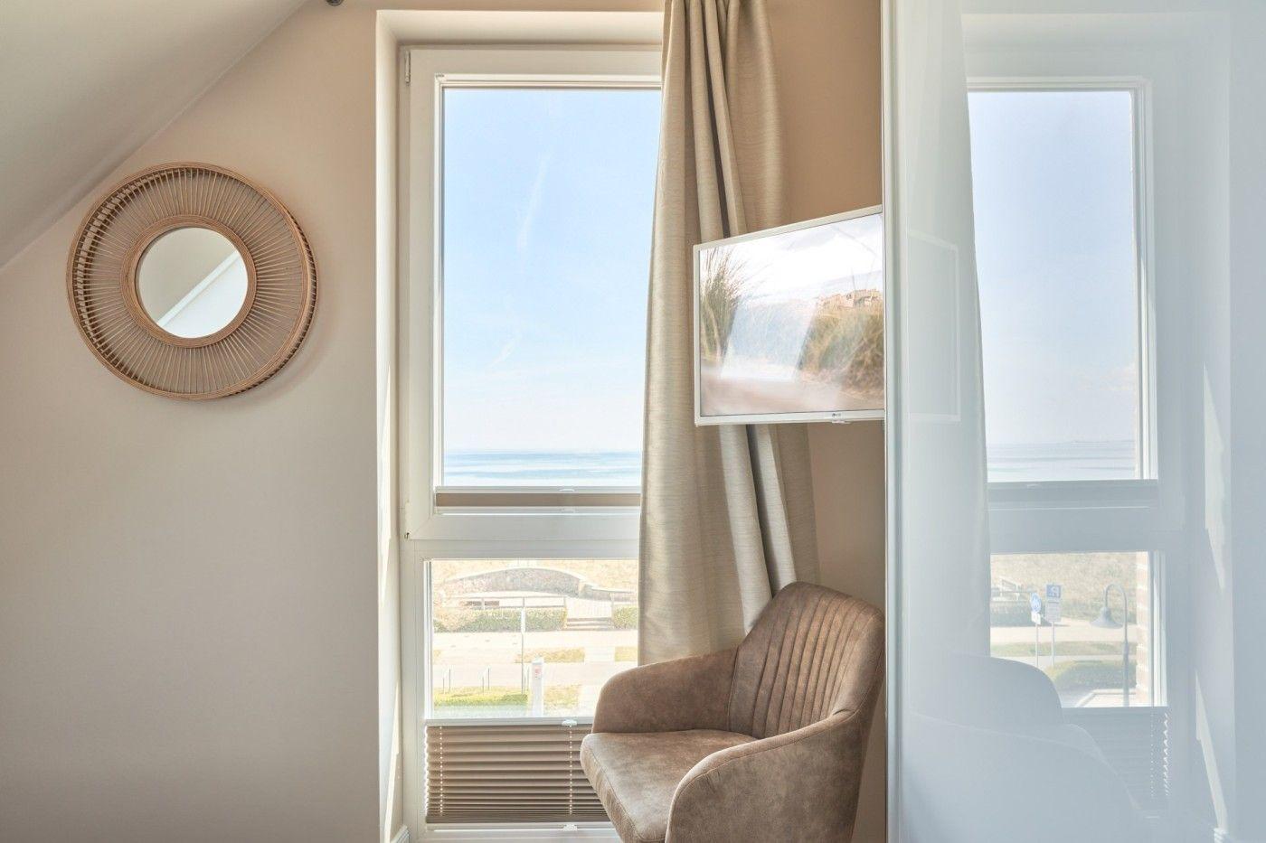 Die Maisonette-Wohnung überzeugt mit einem stilvollen Raumkonzept, hochwertigen Materialien und liebevollen Details. Im liebevoll gestalteten Wohnzimmer mit Kamin lassen sich gemütliche Abende verbringen, während man das Rauschen der Wellen hört oder den Blick auf die Ostsee genießt. Zwei komfortable Schlafzimmer, jeweils ausgestattet mit einem Boxspringbett (1,80 x 2,00 m), einem Smart-TV und beleuchteten Kleiderschränken, sorgen für erholsame Nächte und höchsten Komfort für bis zu vier Personen. Die moderne Küche mit Bartresen und Hockern ist vollständig und hochwertig ausgestattet, inklusive Induktionsherd, Backofen, Geschirrspüler und Kaffeemaschine – und lädt dazu ein, auch im Urlaub kulinarische Momente zu genießen. Ob ein entspanntes Frühstück mit Meerblick oder ein gemeinsames Abendessen im stilvollen Ambiente, hier fehlt es an nichts. Die elegante, beleuchtete Holztreppe führt in die obere Etage und unterstreicht das durchdachte Design der Wohnung. Ein besonderes Highlight sind die zwei modernen Bäder, die mit stilvollem Design und Komfort überzeugen. Eines davon verfügt über eine Sauna und eine Whirlpool-Badewanne und einen stilvollen Wasserbrunnen, die zusammen einen echten Wellnessbereich entstehen lassen - und selbst von hier genießen Sie den direkten Blick auf die Ostsee. Beide Bäder sind mit einer Deckenbeleuchtung in Farblichttherapie ausgestattet sind - perfekt, um nach einem Tag am Meer zur Ruhe zu kommen. Im Obergeschoss befindet sich außerdem ein Homeoffice Arbeitsplatz sowie ein Getränkekühlschrank. Auf dem Balkon genießen Sie den Blick auf die Promenade und die Ostsee. Ein wunderbarer Ort, um den Tag bei einem Glas Wein und dem Klang der Wellen ausklingen zu lassen.