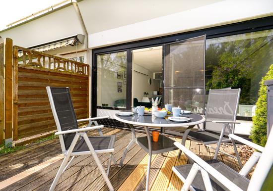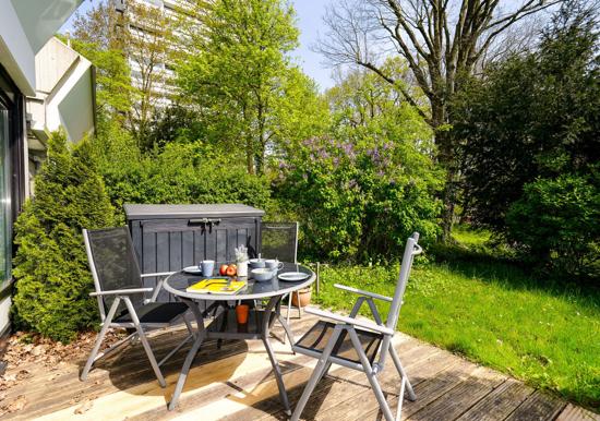Weiterhin bieten eine Heizung, Rauchmelder, Staubsauger, Wäscheständer und eine Garderobe praktischen Komfort. Für den PKW steht ein Parkplatz bereit. Ein Sonnenschirm sorgt für entspannte Stunden im Freien.