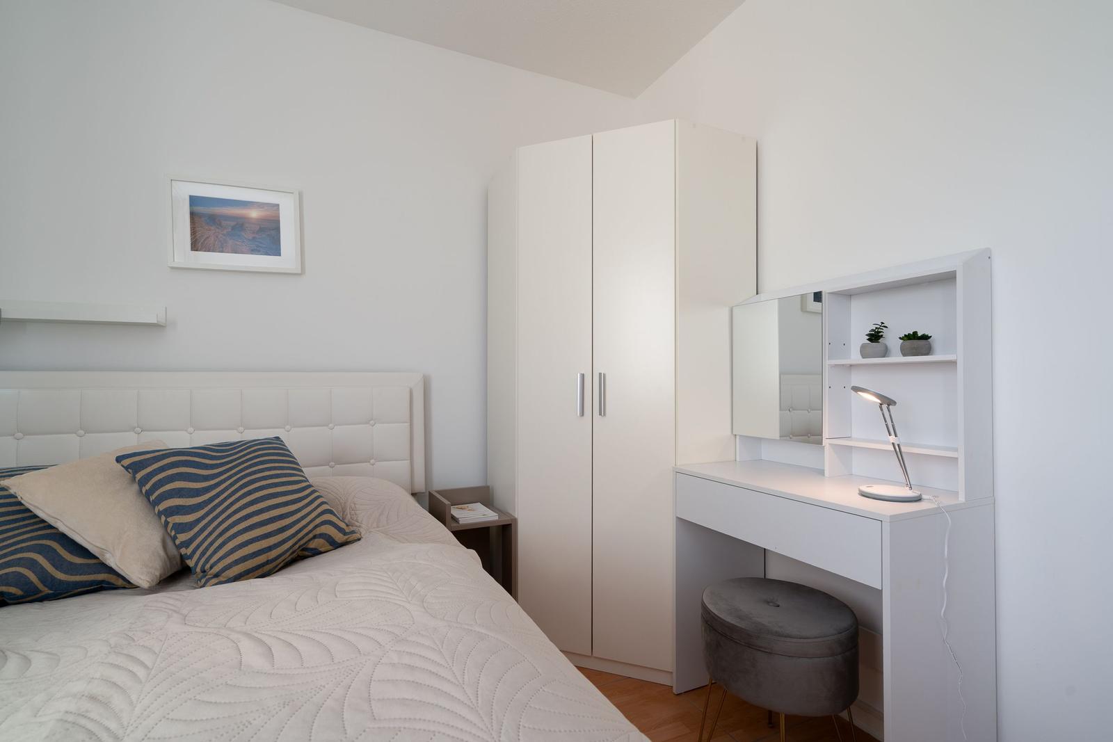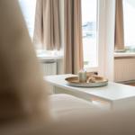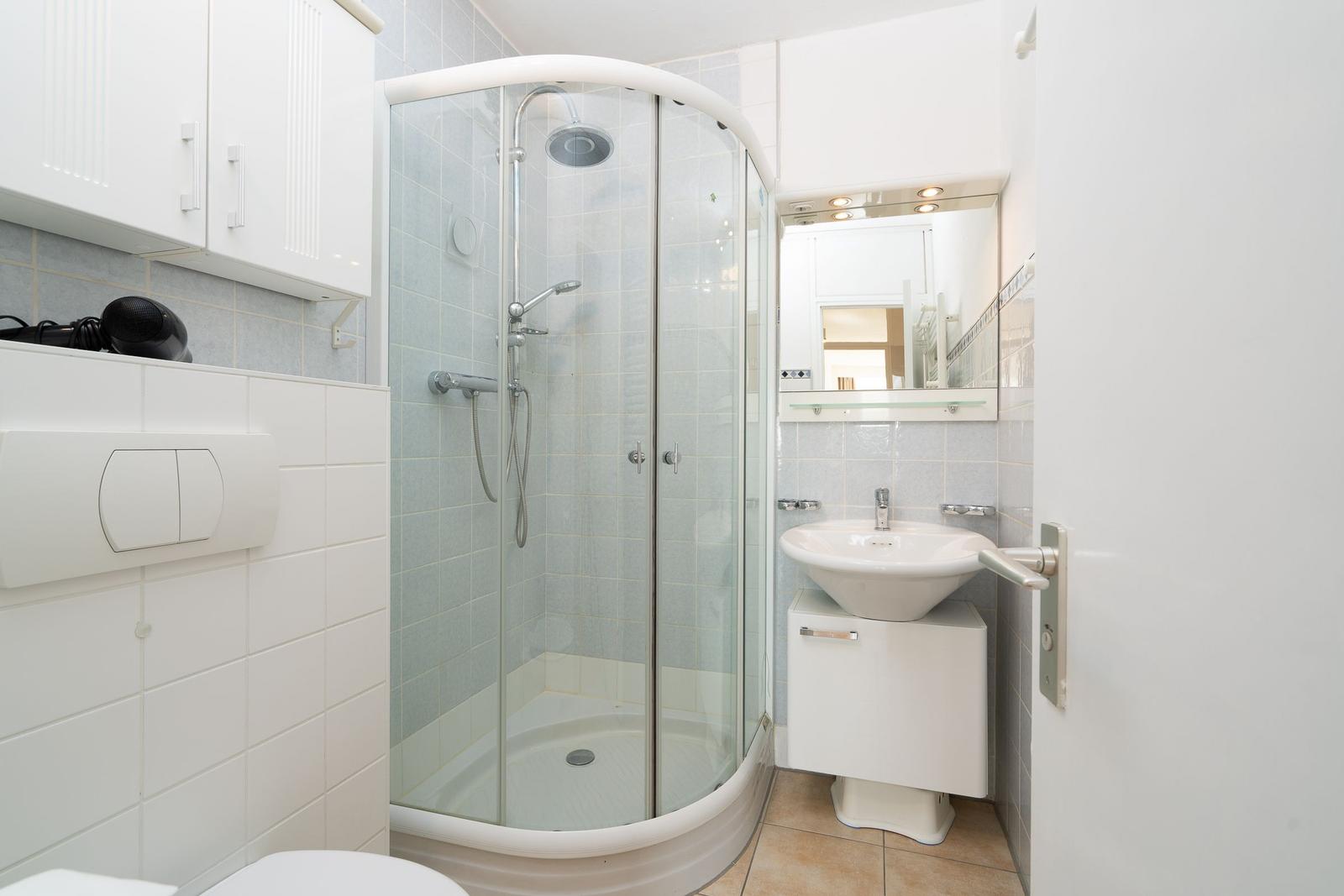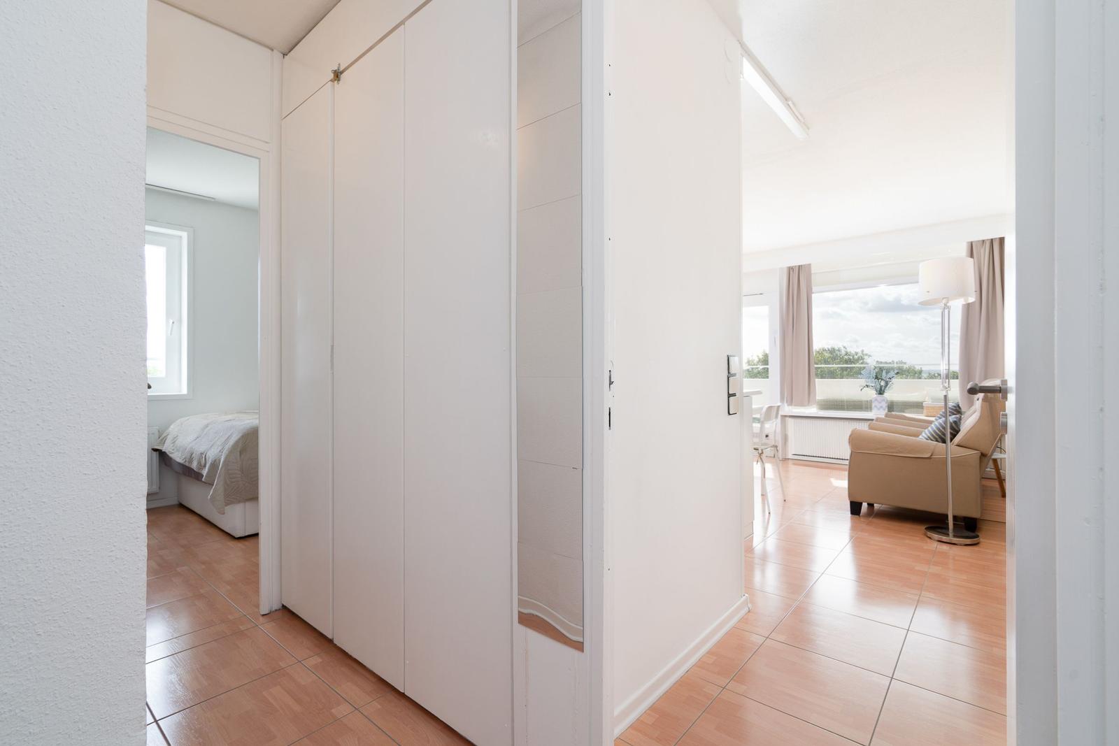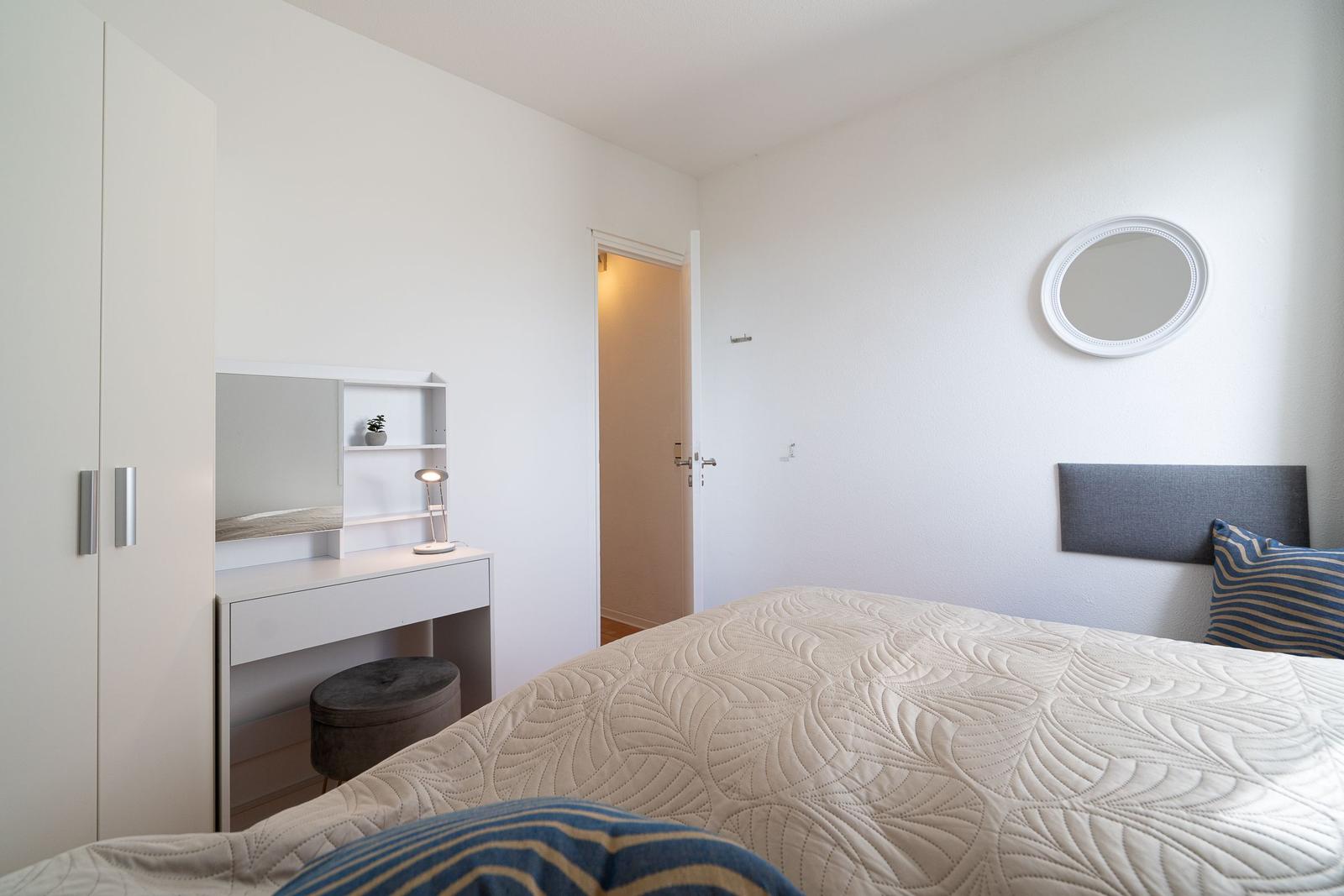Die Ferienwohnung bietet eine komfortable und allergikergeeignete Ausstattung, perfekt für erholsame Tage. Im offenen Wohn- und Schlafbereich befindet sich ein gemütliches Sofa sowie eine Schlafcouch und ein Doppelbett, die ausreichend Platz für bis zu vier Personen bieten. Die offene Küche ist mit modernen Geräten wie einem Geschirrspüler, Elektro-/Gasherd, Backofen, Mikrowelle, Kühlschrank mit Gefriermöglichkeit, Kaffeemaschine und Toaster ausgestattet, sodass die Zubereitung von Mahlzeiten mühelos gelingt. Ein Esstisch ergänzt den Bereich. Das Duschbad verfügt über einen Haartrockner und bietet zusätzlichen Komfort. Weiterhin sorgt die HiFi-Anlage und der TV für Unterhaltung. Kostenfreies WLAN ist ebenso vorhanden. Für praktische Bedürfnisse stehen Waschmaschine, Wäschetrockner und Wäscheständer zur Verfügung. Ein Parkplatz und ein Fahrstuhl erleichtern den Zugang. Die Wohnung ist optimal für einen entspannten Aufenthalt und lädt zum Wohlfühlen ein.